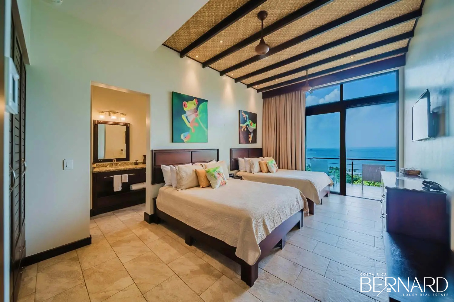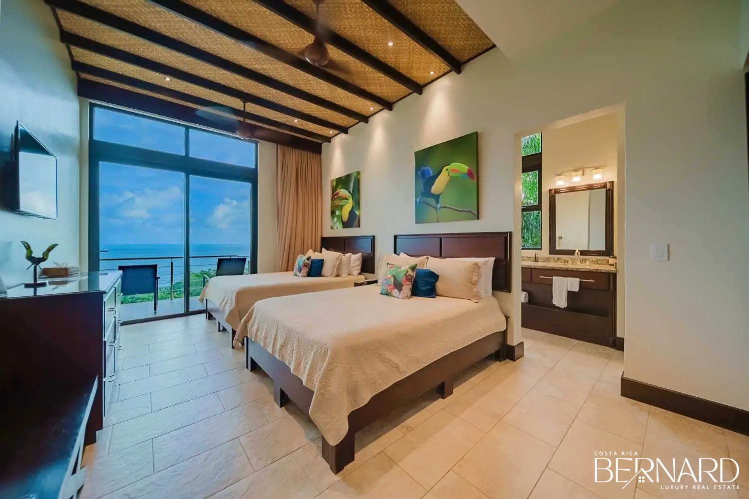 Each of our eight luxury suites at Vista Hermosa Estate is a private suite retreat, offering stunning ocean views and en-suite bathrooms. With a total of 4 King and 8 Queen beds, all true to size and exceptionally comfortable, every detail is designed to provide the utmost relaxation. For more details, view our Villa Floor Plan.